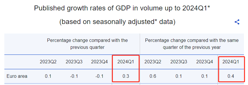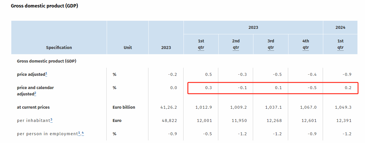 一周前,德国副总理兼经济和气候保护部长罗伯特·哈贝克表示,有迹象表明德国经济略有好转,正在慢慢走出疲软阶段,政府将2024年经济增长预期从0.2%略微上调为0.3%。
