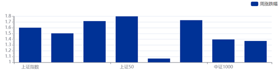 上周权益市场继续上行,大盘指数表现更强,沪指周中突破3150点。上证50上涨1.80%,创业板指上涨1.06%,中证1000、中证2000分别上涨1.40%、1.37%。涨幅靠前的板块是计农林牧渔、国防军工、建筑材料,跌幅靠前的是计算机、通信、传媒。