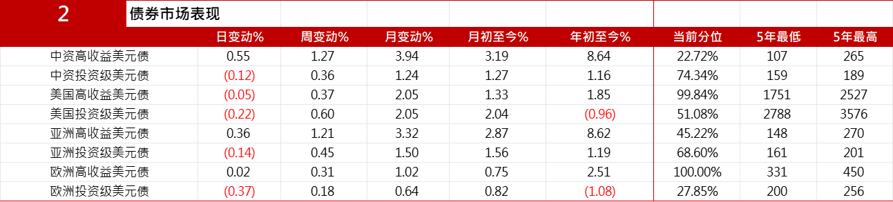 环球债券市场表现数据