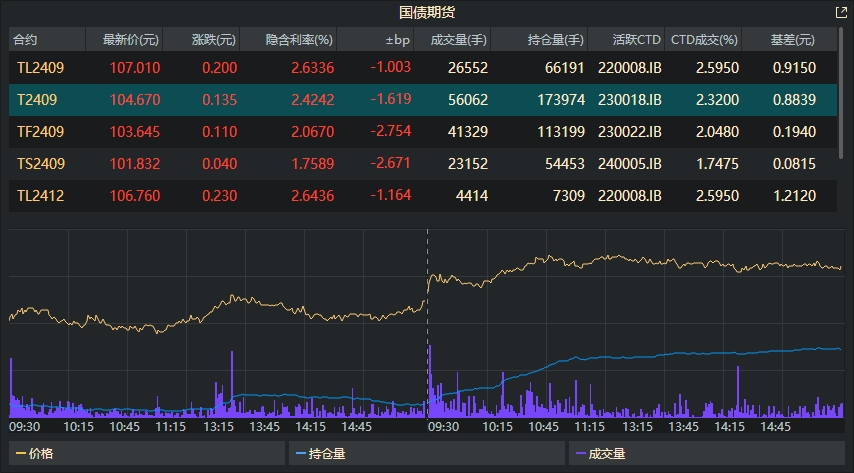 国债期货收盘集体上涨 30年期主力合约涨0.19%
