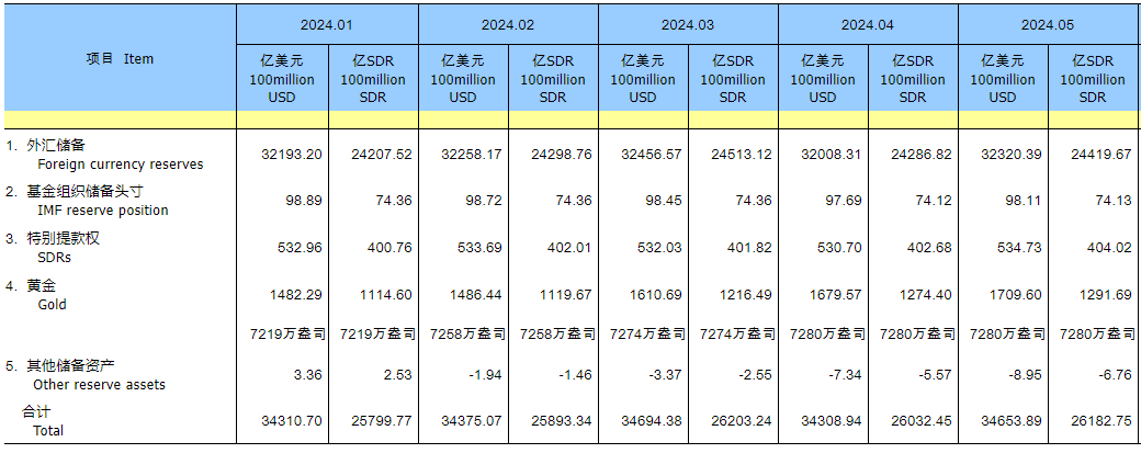 【中国5月外汇储备为32320亿美元 较4月末上升312亿美元】财联社6月7日电,国家外汇管理局统计数据显示,截至2024年5月末,我国外汇储备规模为32320亿美元,较4月末上升312亿美元,升幅为0.98%。