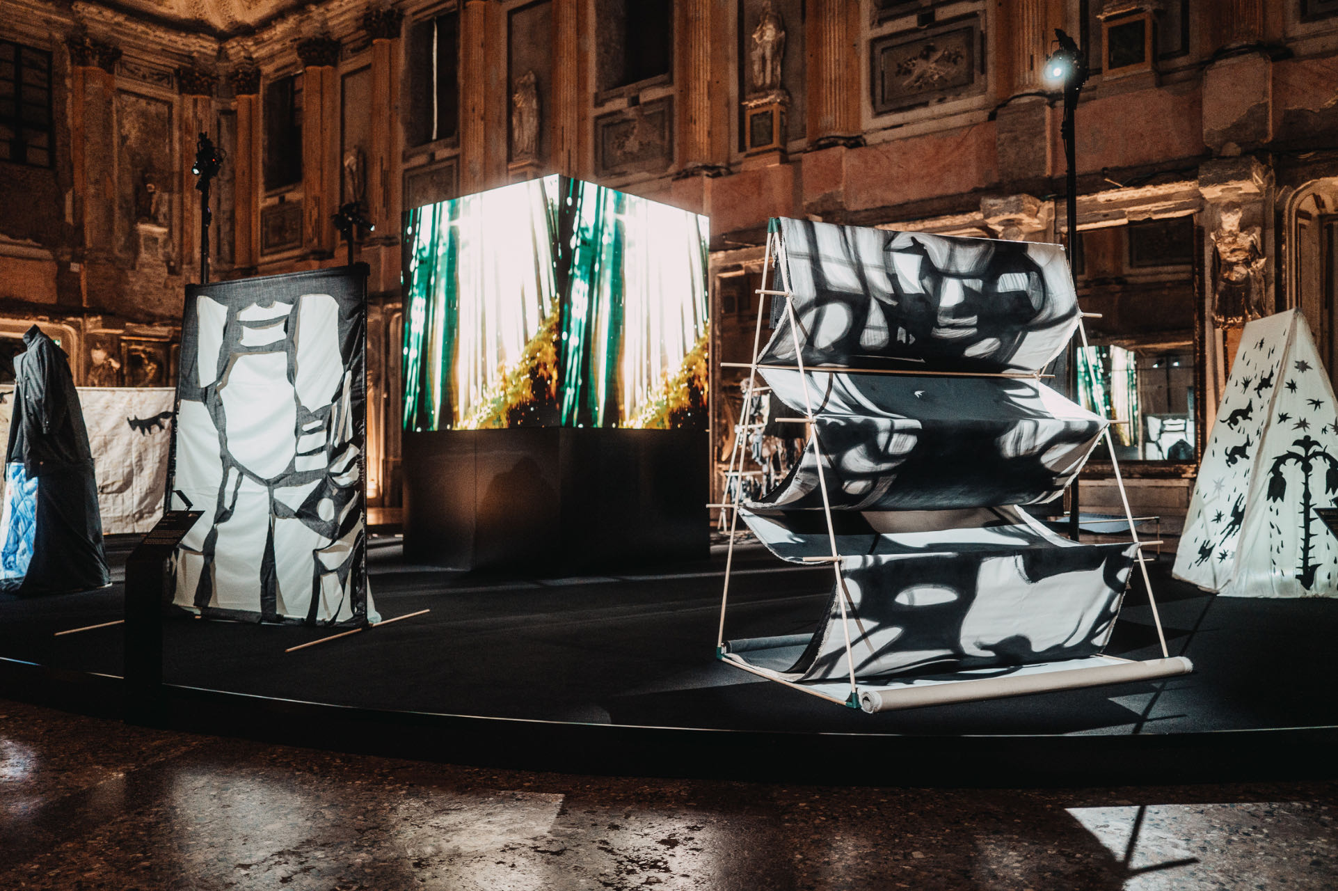 一场独家艺术展览同期开启。CANALI与米兰新美术学院(NABA)的学生艺术家联合共创,带来两件独特的艺术作品——应用90周年胶囊系列面料和单品的雕塑装置,以及一部名为“CANALI视野:从传承向未来”的数字AI叙事视频,以空间、时间、观点为主题,在回顾与展望中,探索CANALI的过去、现在和未来。