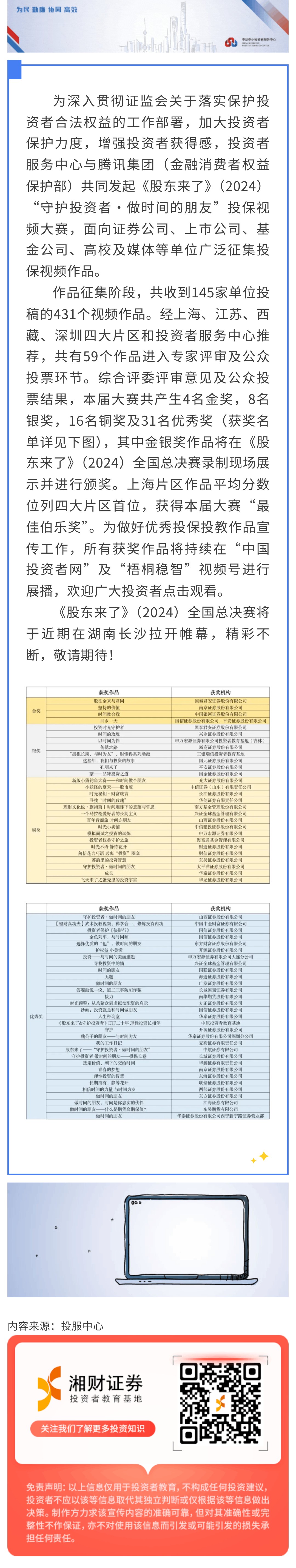 【投服中心 | 《股东来了》】“守护投资者·做时间的朋友”投资者保护视频大赛顺利收官