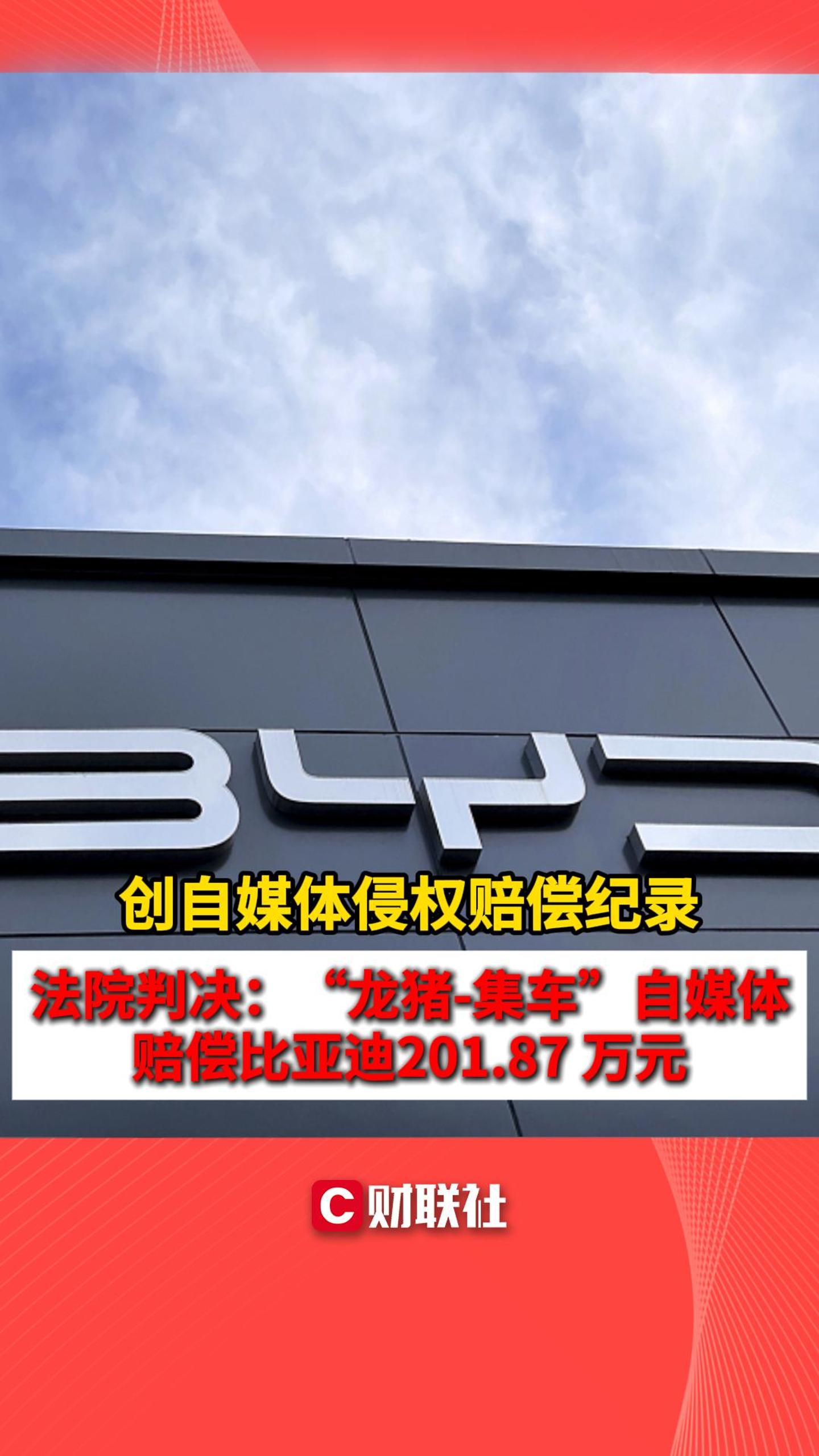 【CC新闻】创自媒体侵权赔偿纪录 法院判决:“龙猪-集车”自媒体赔偿比亚迪201.87 万元