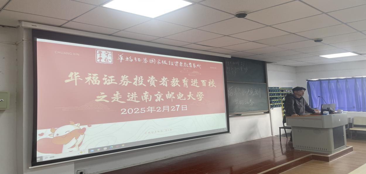 为推动投资者教育纳入国民教育体系,提高南京邮电大学在校师生对券商行业的认知和兴趣。华福证券南京胜太路证券营业部于2025年2月27日走进南京邮电大学,面向100余名师生开展了证券行业从业职业规划讲座活动。