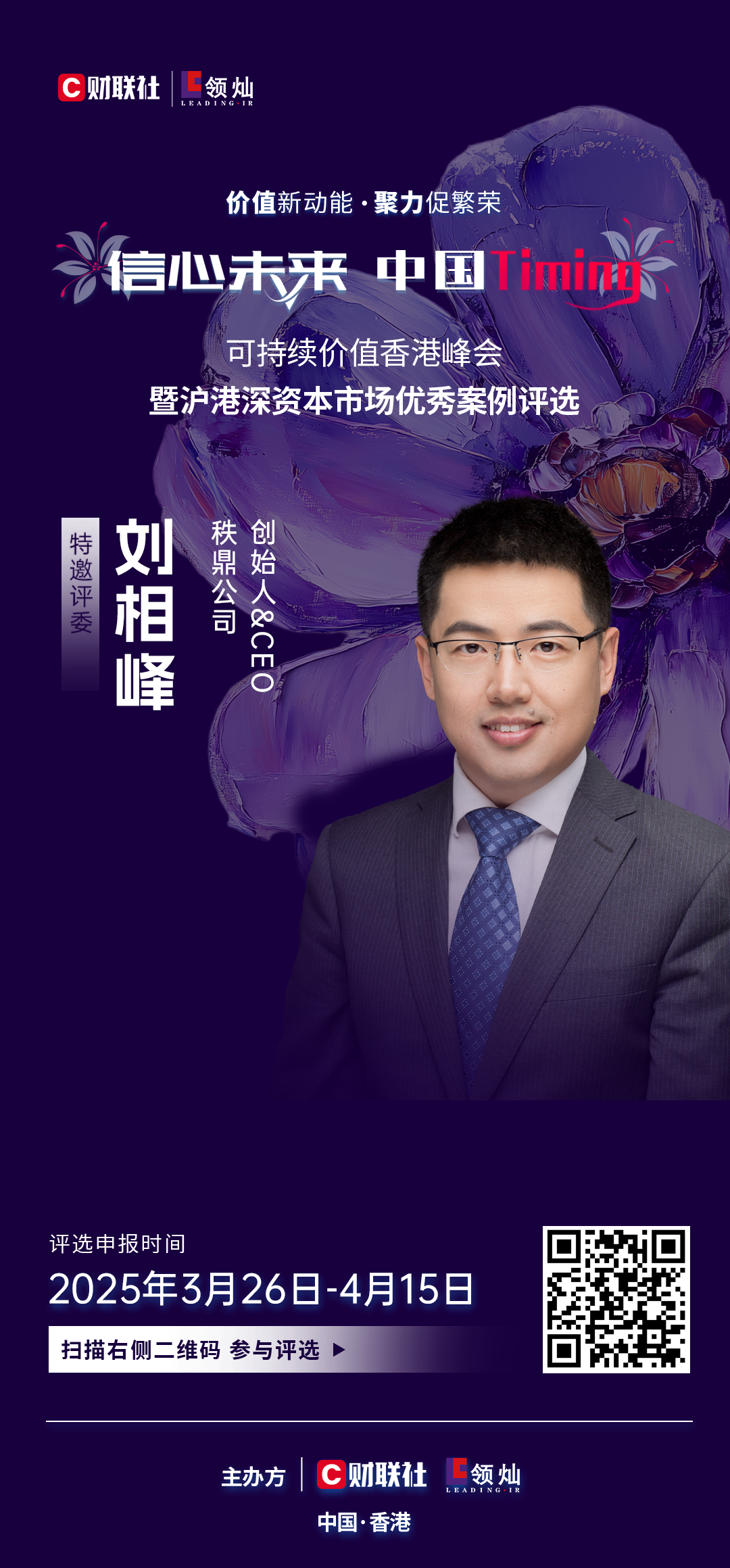 在此背景下,财联社携手上海领灿联合推出第一届“信心未来 中国Timing·可持续价值香港峰会暨沪港深资本市场优秀案例评选”,旨在共同打造香港与内地资本市场的高质量交流合作平台,进一步促进两地经济金融高水平合作与发展,推动两地优势互补、互利共赢,赋能中国企业出海,同时发掘并推广兼具高度成长性及可持续发展能力的领军企业。