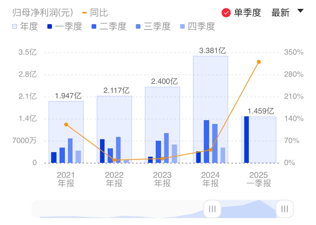 公司24年净利润才3.38亿元,25年一季度就1.46亿