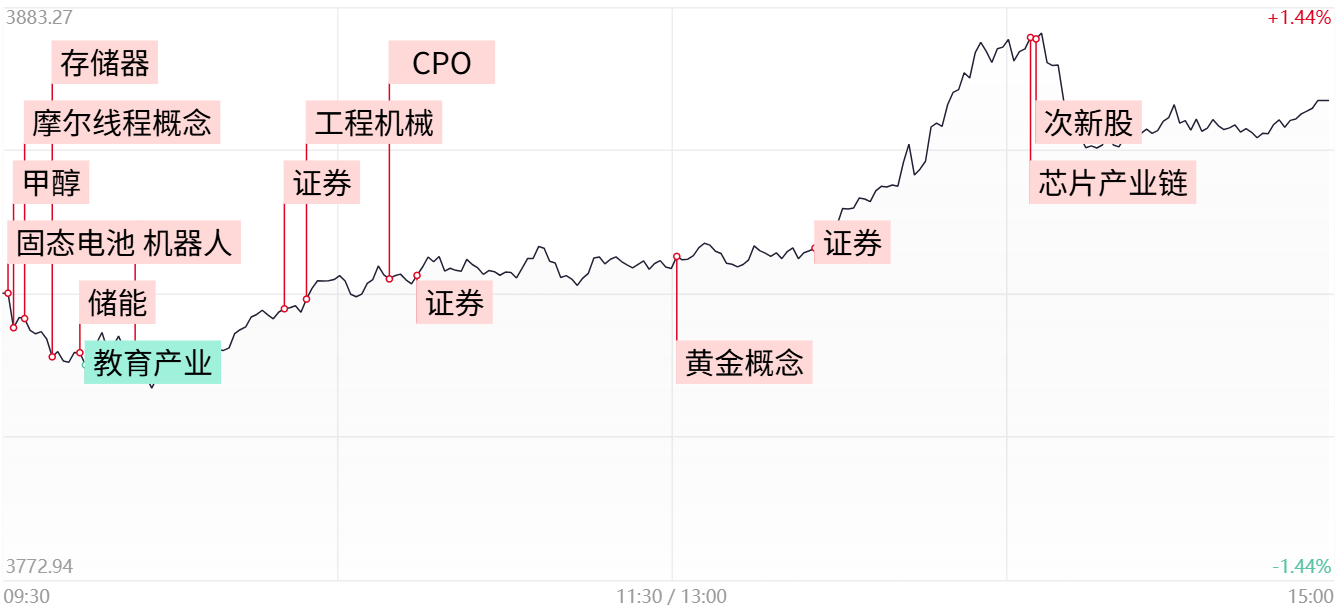 板块上,以证券为代表的大金融方向午后进一步加强,汇金股份、国盛金控、华泰证券、国盛金控涨停,指南针、财富趋势、东吴证券、东方财富、中信证券等涨幅居前。