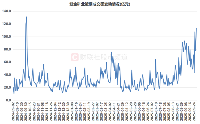 注:紫金矿业近期成交额变动情况(截至9月29日收盘)