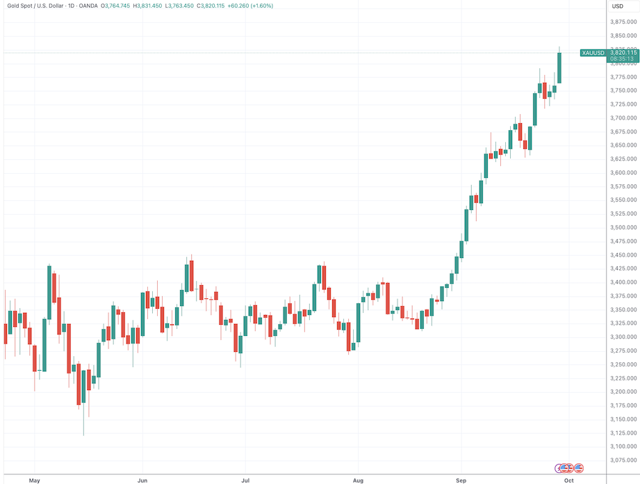 财联社9月29日讯(编辑 史正丞)就在发稿前不久,伦敦现货黄金价格又摸到3830美元/盎司的历史新高,日内涨幅接近70美元。黄金的节节攀升也带来了一个纸面上的新纪录——美国财政部的黄金储备价值正式突破1万亿美元。