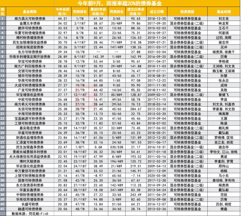 债市今年明显承压,甚至多次出现机构密集赎回的现象,债牛结束已经成为共识,何时探底才是债券投资者关注的重点。在债基的回报排名上,受益于权益市场良好上涨,可转债基金拿下前9个月的冠军,包揽前十中6个席位。
