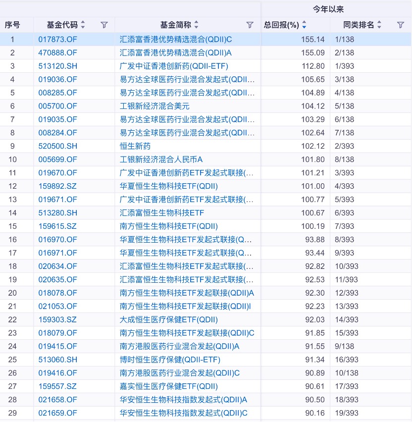 跨境基金中,港股创新药是“翻倍基”的聚集区。