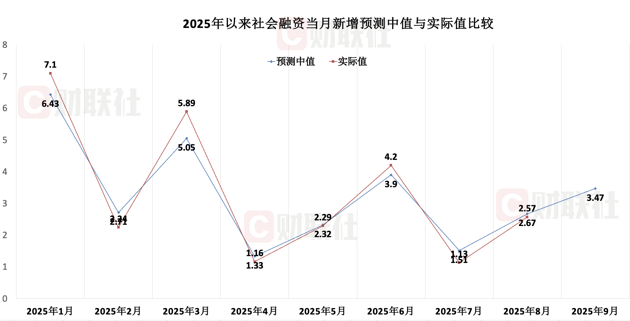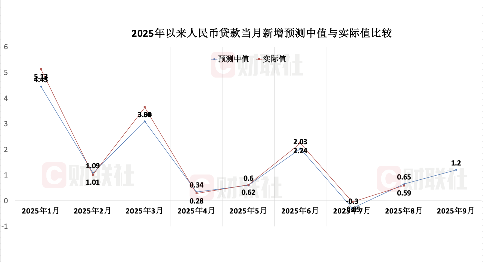从本期来看,市场机构对9月新增新增人民币贷款的预测中值为1.2万亿元,较2024年同期1.59万亿元少增0.39万亿元,预测区间为0.8万亿至1.61万亿元。