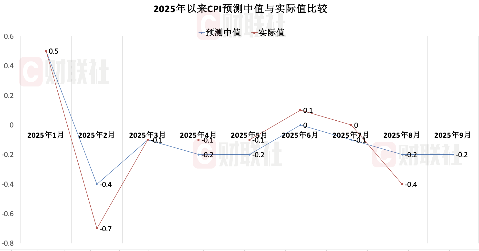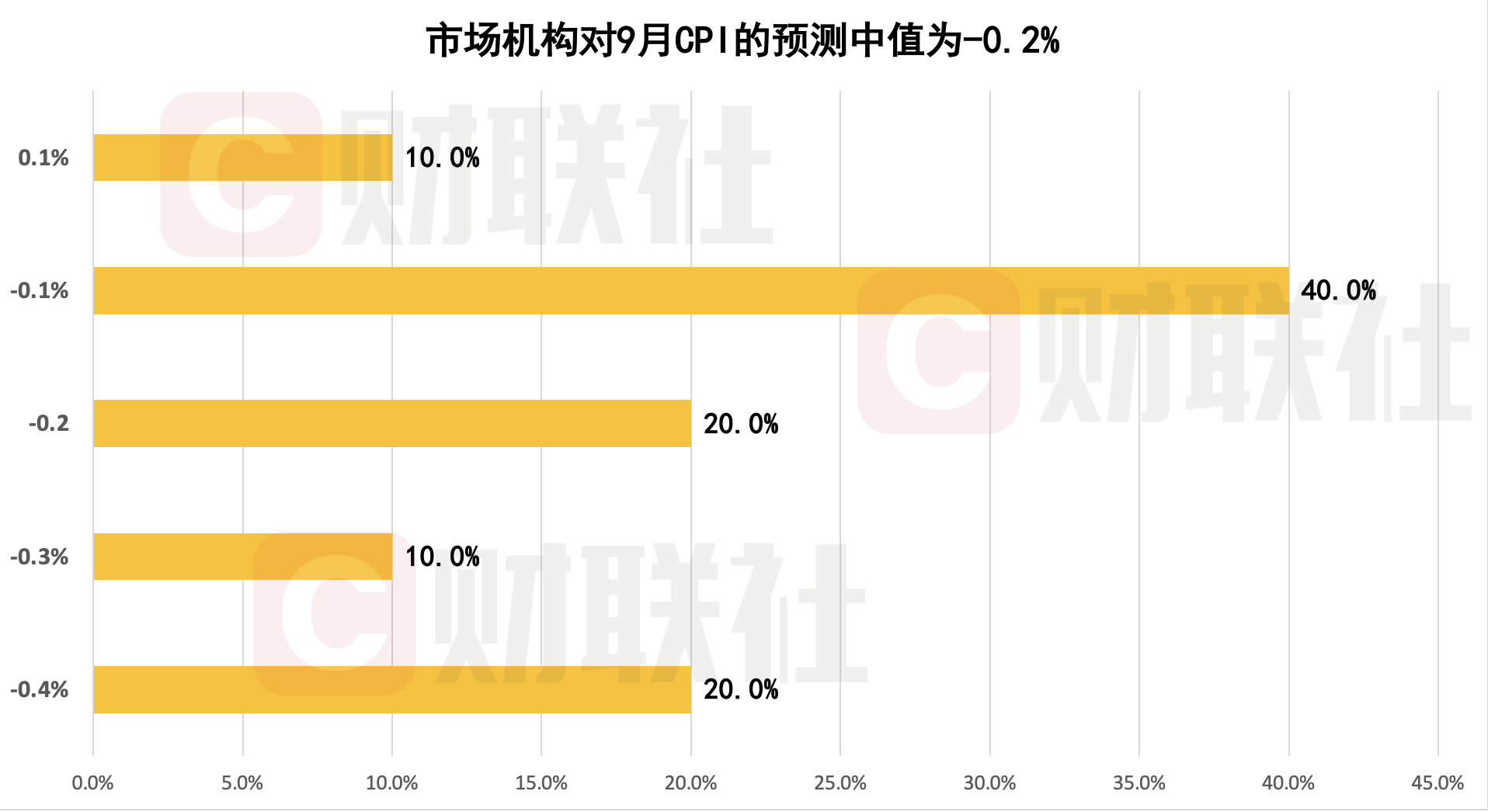 从同比读数来看,市场预计9月CPI同比增速持续在低位运行。具体来看,市场机构对9月CPI的预测中值为-0.2%,预测区间为-0.4%至0.1%。