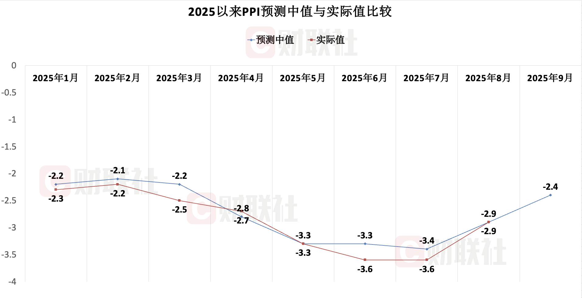 PPI方面,2025年7-8月,反内卷政策带动的上游资源品涨价驱动PPI边际回暖。具体来看,市场机构对9月PPI的预测中值为-2.4%,预测区间为-2.6%至-2.1%。