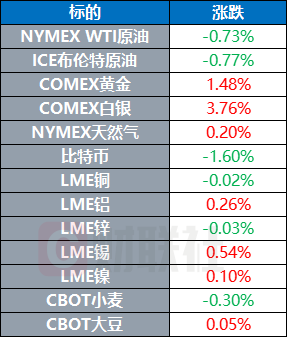 COMEX黄金期货收涨1.48%,报4224.9美元/盎司,COMEX白银期货收涨3.76%,报52.525美元/盎司,均创收盘新高。