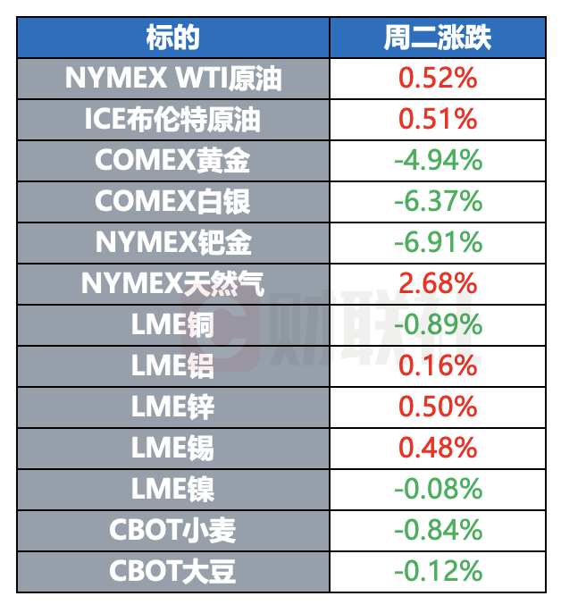 WTI原油期货收涨0.52%,报57.82美元/桶。布伦特原油期货收涨0.51%,报61.32美元/桶。
