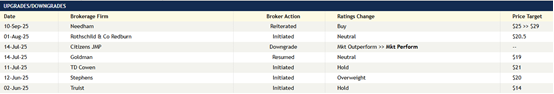 9月10日,Needham于重申“买入”评级并将目标价上调至29美元;
