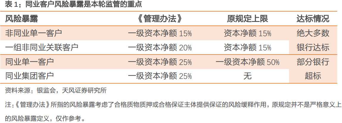 对于非同业客户的监管要求,整体尽管有所收紧,但从《答记者问》来看,目前国内绝大多数商业银行对于非同业客户的风险暴露均能达到监管要求,对于非同业客户的风险暴露并不是本轮监管的重点。