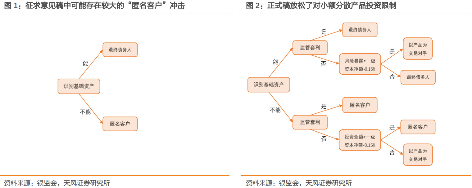 正式稿对于“小额”风险暴露进行了豁免,前期市场担心的“匿名客户”冲击减小,公募基金、ABS仍可正常投资,但对于一级资本不足的中小银行仍可能会有一定的压力。