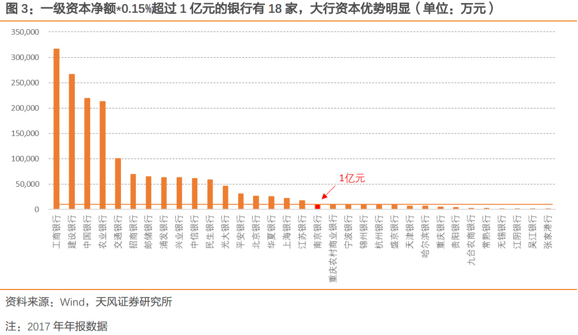 整体来看,风险暴露的监管限制均以一级资本净额为基准,自营业务的规模很大程度上受制于一级资本规模,资本充足的大行在本轮监管中基本不受影响,而且优势会越来越明显,而部分资本不足的中小行可能面临较大的压力。一级资本通常只能股东投入和自身积累[1],后续部分银行会面临补充一级资本压力。