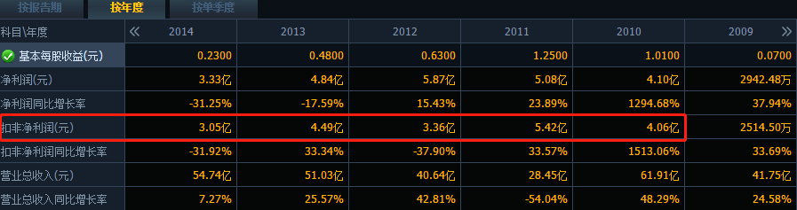 数据显示,2009年,电广传媒将创投业务列为主业之一,随后几年,公司扣非净利润突飞猛进,始终保持在3亿元以上。而此前,电广传媒的业绩盈利大多在千万级别,仅2000年和2007年净利润过亿。