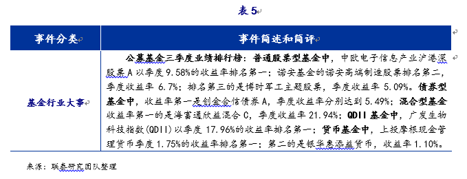 5.重大事件:公募基金三季度业绩排行榜,QDII业绩亮眼