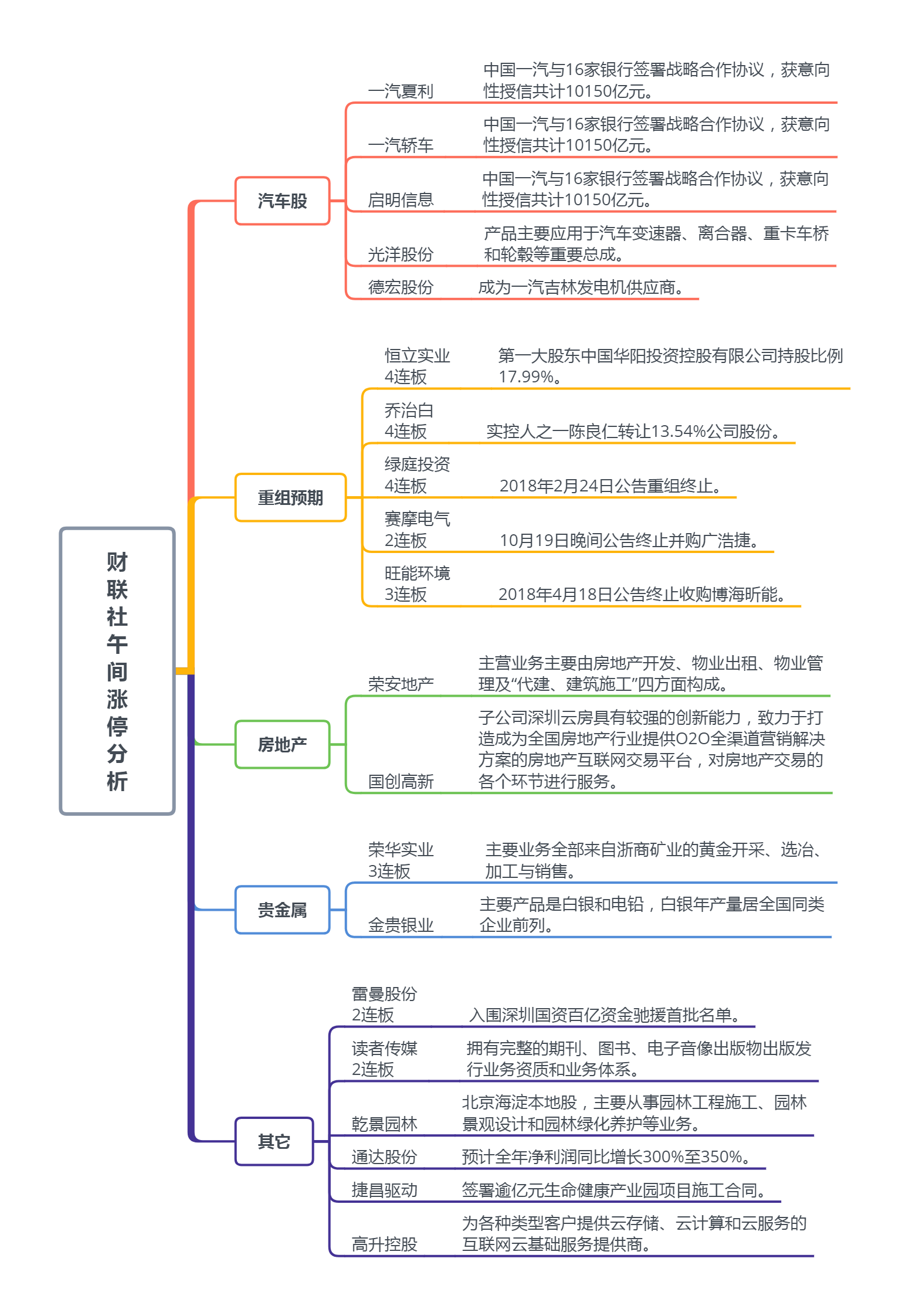 中国一汽获16银行超10000亿授信,一汽轿车、一汽夏利封死一字板,启明信息则是T字板;此外,还有一汽吉林发电机供应商德宏股份一字板,产品汽车零部件供应商光洋股份封涨停。中国一汽昨日公布,与国家开发银行、建设银行、工商银行等16家银行签署战略合作协议,本次各银行给中国一汽意向性授信共计10150亿元。此次获万亿意向授信的背景是,国内车市销量增速出现明显放缓。