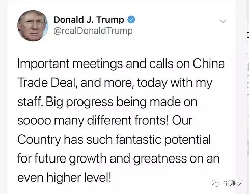 牛弹琴(bullpiano)注意到,就在刘鹤副总理率代表团赴美前夕,就中美经贸问题,美国总统特朗普又发表了多条推特。
