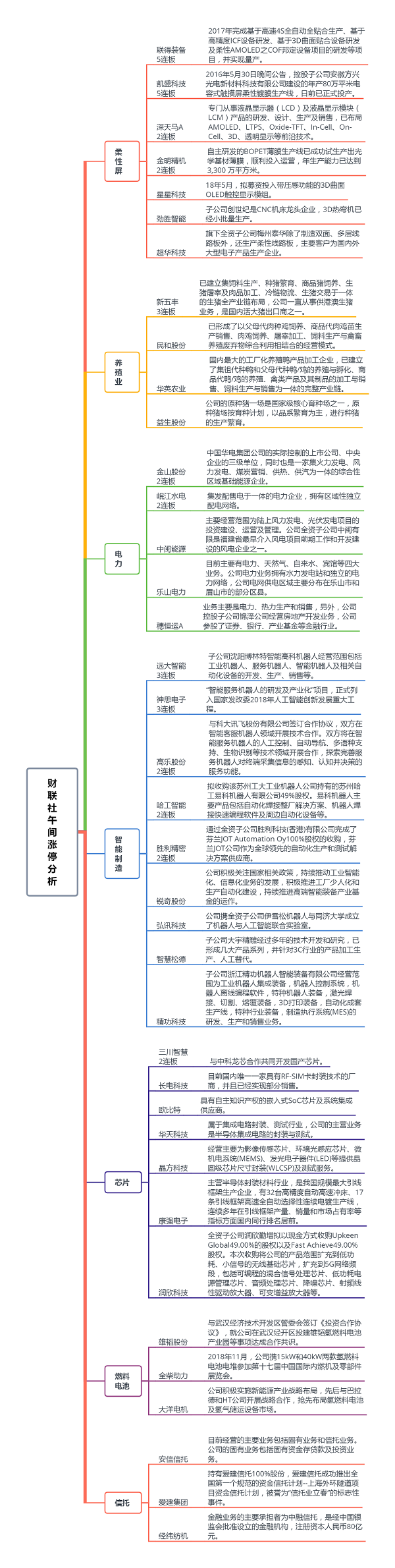 市场单边上涨,连板个股达到14只,涨停个股近65只,下跌个股仅76只。题材多点开花,柔性屏、燃料电池、智能制造、芯片、猪肉相关等概念板块多股涨停。