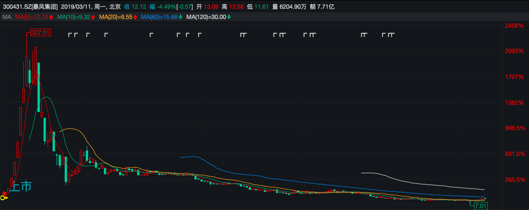 然而,妖股就妖在涨也疯狂,跌也疯狂。爆炒之后,没有业绩支撑、只会炒概念的暴风科技跌下神坛,股价一路向下。截至3月11日暴风集团收报12.12元,按前复权的股价计算,股价从最高点下跌超90%。