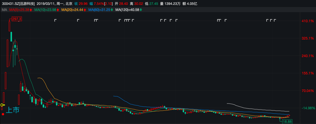 顶着“网游加速器龙头”的光环,迅游科技于2015年5月登陆深交所创业板,上市之后公司股价连拉19个一字涨停,并在当年6月24日创下297.3元的历史高点。就在市场期待着迅游科技冲上300元之时,该股突然宣布因筹划重大事项停牌,开了“新股未开板就停牌”的A股先例。