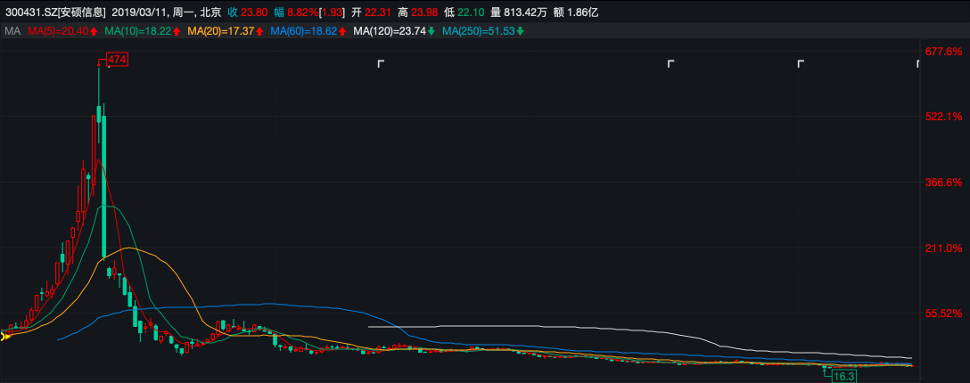 但安硕信息的业绩完全不能支撑其股价,2016年公司亏损1949.26万元,直接拖累股价下跌。截至3月11日安硕信息收于23.8元,按前复权的股价计算,股价从15年高点下跌90%。