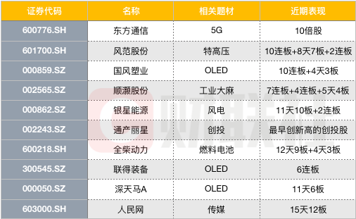 回到当下市场,如今最活跃的妖股与2015年的妖股走的正是同一波套路。妖股龙头东方通信自从2018年10月19日创下3.70元低点以来,今年最高涨到37.07元,累计最大涨幅超过900%。而东方通信股价能翻10倍的原因主要有两点,一其是热门题材5G的龙头标杆,二该股票的流通盘较小,方便游资炒作。其余妖股也无外乎是有风口概念加持,或是当下游资的宠儿。
