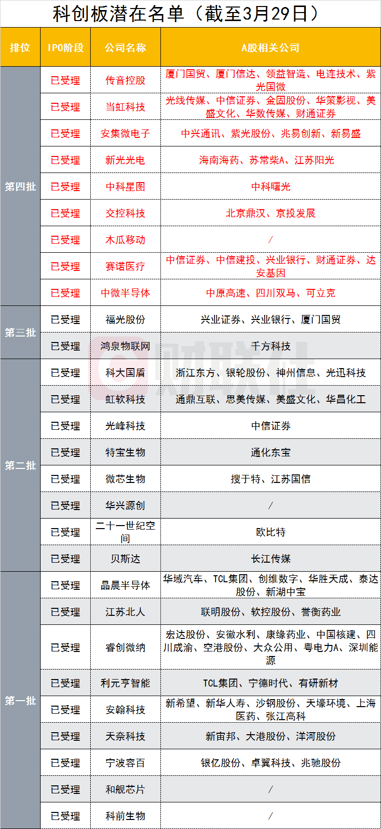 科创板已受理企业和影子股: