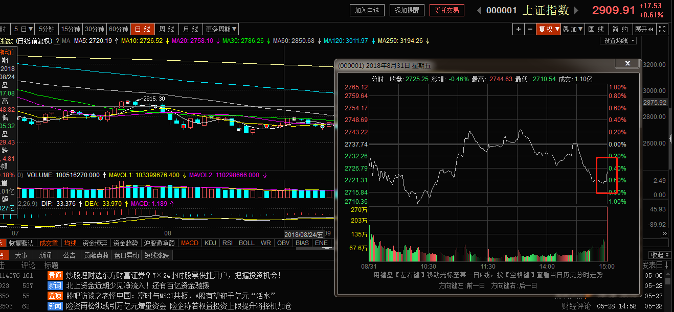 这个不是北上资金第一次尾盘突袭抄底A股,早在2018年8月31日,当时北上资金也出现过一次突击驰援A股的情形,当时是因为A股纳入因子从此前2.5%提升至5%。因当时的市场情绪还处于悲观状态,北上资金并未能逆转市场走势,但是在4个月内形成了A股的阶段性底部。
