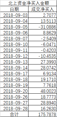 虽然上次北上资金突袭抄底A股没有逆转市场的走势,但是在接下来的一个月内,北上资金总体上呈现净流入的态势。据财联社统计,北上资金在2018年9月份合计净流入176亿元。