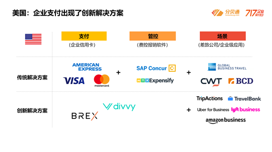 Divvy整合了费用管理+支付,Brex重新定义了企业信用卡,TripActions创新了商旅管理,从不同的维度解决企业支出的管理问题,将企业信用卡和事前费用管控相结合,嵌入了差旅等企业高频支出场景,为企业带来“支付+管控+场景”的企业支出管理方案。