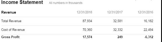 然后市场的表现显然投资者没有过度担忧账面上的亏损,这可能是由于公司一直致力于研发创新,其2018年R&D方面的支出高达958.7万美元。截止到2018年底,其招股书中显示,拥有355名全职员工,其中包括233名运营人员,44名创新研发人员,35名销售及营销人员以及11名财务人员。