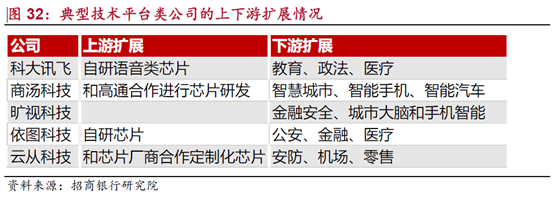 在人工智能产业链中,中游技术平台类公司的地位比较核心,主要是因为其具备较强壁垒,同时向产业链上下游的扩张较为容易。