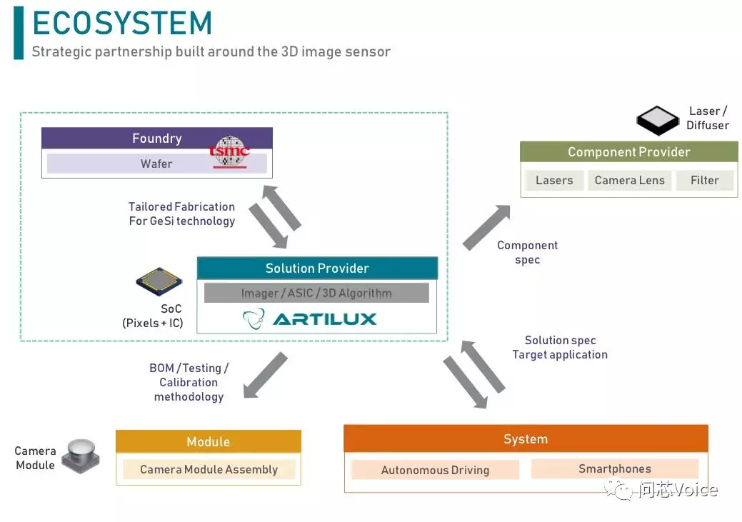 一向是全球 IC 设计新创公司背后推手的台积电,花了约一年时间评估该技术的可行性、市场前景、团队技术背景之后,决定成立全新的 GeSi 工艺平台,提供技术支援,在全球都以硅材料做 3D 传感器的市场中,无疑是对于该团队技术的莫大肯定。
