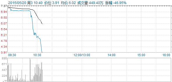 财联社20日讯:前中国首富李河君控股的汉能薄膜发电于今早10时15分左右突然跳崖式直线下跌,现跌46.95%,报3.91港元,成交1.75亿股,成交额10.5亿港元。公司公告10时40分起短暂停牌。