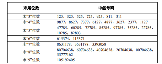 京沪高铁中签号出炉,共有2343790个,每个中签号码只能认购1000股。中签的投资者应在1月8日及时足额缴纳新股认购资金。