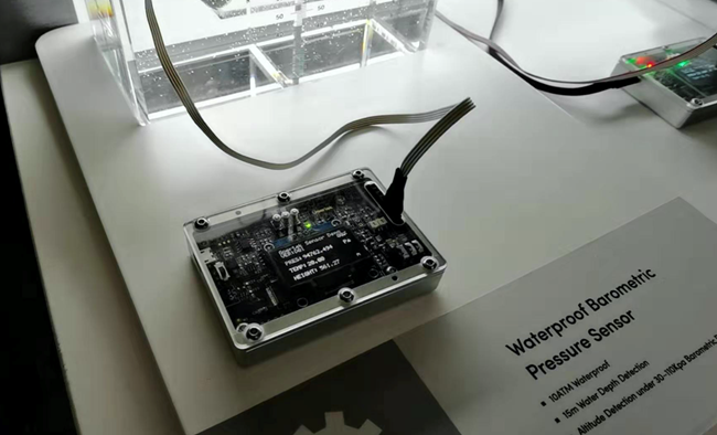 歌尔还带来了可满足智能硬件系统小型化、功能集成化诉求的多款小型化、高集成、高性能SiP(系统级封装)产品,里面包括Component Sip和System Sip。当然还有高性能、高精度的MEMS传感器系列新品,包括血压传感器、压力传感器、气流传感器等,值得一提的是,压力传感器的检测精度在水中能够达到毫米级别,在空气中能够达到厘米级别。