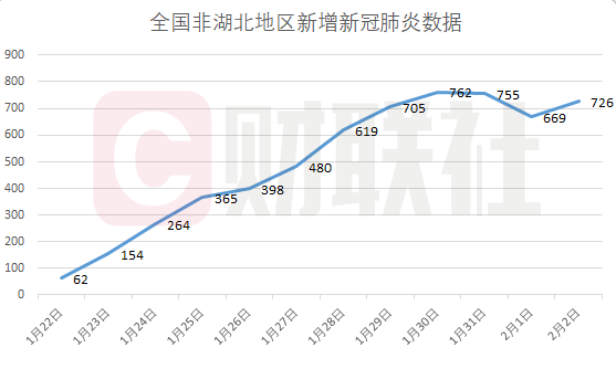 【全国非湖北地区新冠肺炎确诊病例数新增726例】财联社2月3日讯,据卫健委统计数据计算,2月2日全国非湖北地区新增新冠肺炎确诊病例为726例,截至2月2日24时累计确诊6028例。