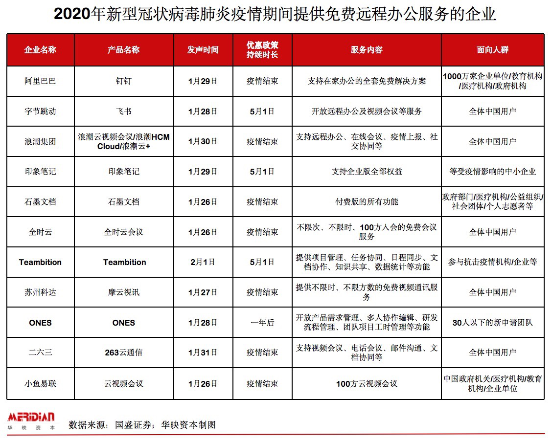 爆发不仅在在线办公领域,疫情客观上促进了各行业的数字化和线上线下融合进程