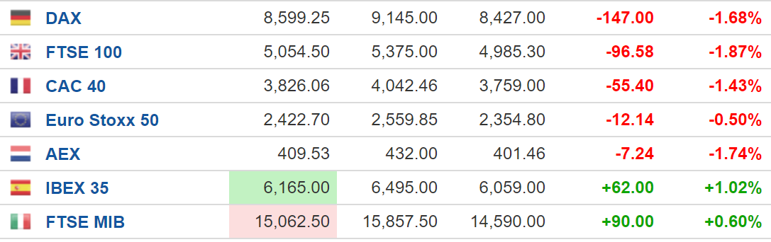 (今日欧洲主要股指走势,来源:investing)