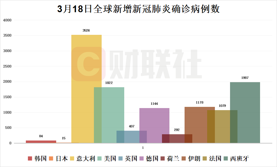 欧洲地区确诊病例上升较快,意大利新增3526例,累计确诊达到31506例;法国新增1079例,累计确诊达到7652例;西班牙新增1987例,累计达到11178例。