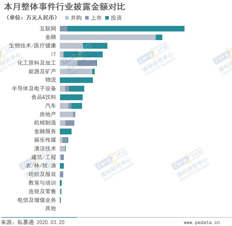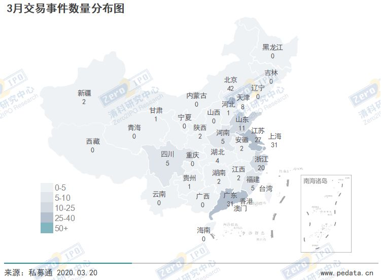 清科私募通统计:截至本周五下午,投资、上市和并购共78起事件,涉及总金额312.59亿元人民币。从交易金额来看,本周金额较大事件是:2020年3月17日,中国远洋海运集团有限公司、大连船舶重工集团有限公司、沪东中华造船(集团)有限公司投资中远海运能源运输股份有限公司(简称:中远海能)51.00亿人民币。从交易事件地域分布看,目前主要分布在北京市、广东省和上海市,占比分别为19.4%,15.0和15.0%。