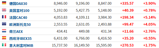 今日欧股主要股指集体高开,刺激措施提振欧洲市场信心,截至发稿,欧洲主要股指普遍上涨,法国CAC40涨逾5%。